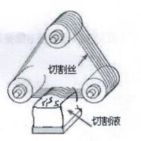 首先先按照比例把碳化硅和一種粘性液體(切割液)綜合調(diào)和在一起,用一根非常細(xì)的鋼絲繩粘上調(diào)和的切割液(就如水車一樣循環(huán)粘帖)從而達(dá)到切割的目的,