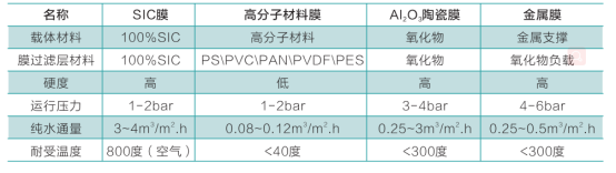 SiC膜與其他膜的優(yōu)勢(shì)性能對(duì)照表